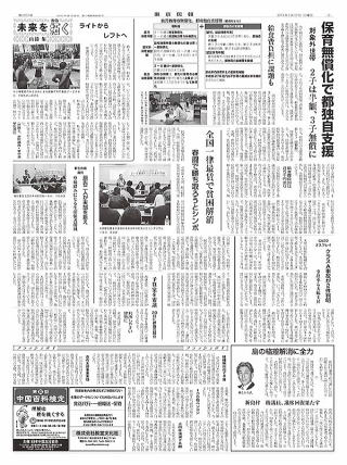 • 保育無償化で都独自支援 対象外世帯 2子は半額、3子無償に 給食費負担に課題も