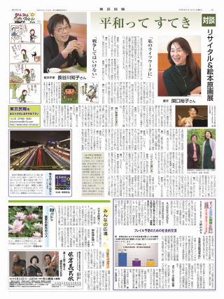 • 平和ってすてき 対談 リサイタル&絵本原画展 歌手・関口裕子さん「私のライフワークに」、長谷川知子さん「戦争してはいけない」