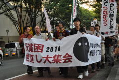 反貧困世直し大集会でデモ行進する宇都宮さん(左から2人目)
