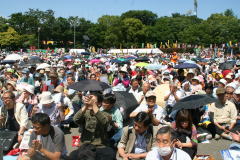 原発をなくす全国連絡会が明治公園で開いた集会には、1万8千人(主催者発表)が集まりました。全国の原発立地で運動を進める団体などがリレートークし、「伊方原発をとめまっしょい」とコールする愛媛大学の学生など、それぞれの訴えに大きな拍手が起こりました。