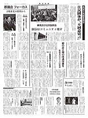 都議会フォーカス 予特各党の質問から 民主・神野都議=侵略戦争を美化 知事「自衛だ」と賛意/自民・中屋都議=カジノ解禁迫る 知事「カジノは文化」/公明 世論反映し「認可保育所増説」に言及