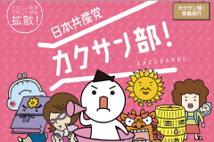 カクサン部(http://jcp.or.jp/kakusan/)とは、ネット選挙解禁で生まれた日本共産党の特命PR部。「ゆる〜い姿の、ゆかいな党員たち」が「ただしい政策、たのしい政治」を、世の中に「カクサン(拡散)」することを使命にしています。