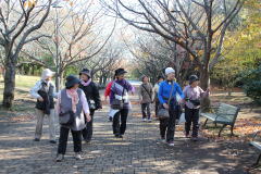 台風並みの風雨に襲われた翌日(11月26日)の東京は、抜けるような青空に。新婦人江戸川支部の「散歩小組」の人たち10人がこの日、気持ちよさそうに園内を散歩しました。リーダーの五味淑子さんによると、散歩小組ができてから6年になります。